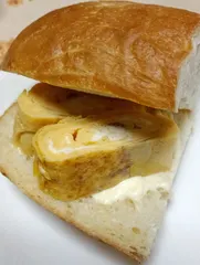 厚焼き玉子のサンド 野菜何もなくて…食べ終わってから、キュウリもらってたの思い出す😂😆 少し甘めの厚焼き玉子をサンドしました。おうち食べなので、ソフトフランスは少しトーストしています!