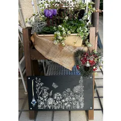 看板付き鉢置きスタンドに♪Xmas 🎄ver. ■作品内容 以前WSで作った看板付き鉢置きスタンドを、移動して、クリスマスバージョン🎄に、ディスプレイしました😊 ■工夫ポイント 鉢置きの部分は、細長く小さめだったので、小さいプランターに、寄せ植えをしました寄せ植えの後ろに、サビサビアイアン飾りも刺しました