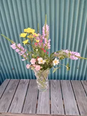 今日の生け花 ■作品内容生け花 虎の尾チェリーセイジ秋明菊 ■こだわりポイント庭に咲く花、葉、木々を飾る。