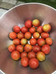 本日のミニトマト 116日畑に植えて68日 以前から収穫は出来ていたのですが、皆さんのように沢山なかったので投稿してませんでしたが、やっと沢山収穫できました🤗