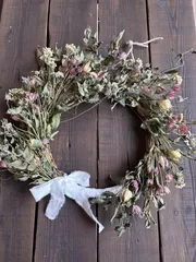 春のリースレッスン 残雪がまだ残る山の上にある森🌳へ車で2時間リースレッスン😊癒しのひととき🌳ホワイトのコットンリボン🎀が春らしいバックがホワイトでも春色リースが映える🎶 同じテーブルの方と一緒に撮影💓 視力検査みたいだと大爆笑😂 参加者11名🎶同じ花材でもそれぞれ素敵なリース