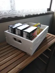ティッシュBOX&リモコン立て 長年使っていたティッシュケースが汚れてきたのと、いつもリモコンを探し回っているので両方収納できるものがほしかったのですがネットで市販の物を調べるとティッシュの大きさが小さいのが多いらしい💦ネットでDIYのものを参考に作ってみようと思いました。 のこぎりで板をギコギコ。ティッシュの穴はドリル