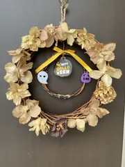 ハロウィンリース🎃 以前作ったクリスマスローズのドライ!リースにして、ハロウィン🎃飾りをプラスしてみました😃