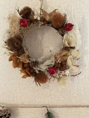 Xmasリース 千日紅と綿の実のリースを作りました♪