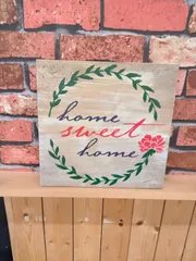 サインボード 今月初めてのワークショップ これはどうしても作りたかったです私の趣味を続けていくにあたり ホームスイートホーム ( 愛する我が家)理解ある家族がいて趣味ができるので玄関にかざります 家族を見守ってね