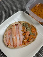 香箱蟹と外子の醤油漬け 🦀香箱蟹の解禁は来月なので、解凍販売だったけど、300円だったので購入🤤小さいので優しくほぐして甲羅に詰めました😍外子は醤油漬けにして明日の朝🍚にします✨