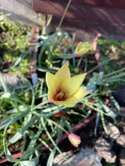 ここのエリアは通常のチューリップは何度トライしても咲かなかった場所なので、数年前に原種を植えてみたところこれも出ず😱😱😱 今年は何故かこれが1輪出てきました😅