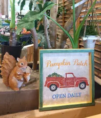 かぼちゃ畑のトラック B&Bのサインボード 久し振りに参加☺️ トラックが可愛いくて、このデザインにしました😆 ダメージ加工 トントンガンガンしましたよ😁 ベースはこんな感じに 3色のせました トラックは渋みの入った レッドブラウン(だったかな?うろ