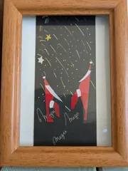 プレゼント🎁交換 グラスアートのフィルムの切れ端を使ってメタボサンタ🧑🎄さんピンセットを使って〜息がかかるとパーツが飛びます サンタ🧑🎄さんだってプレゼント🎁欲しい〜