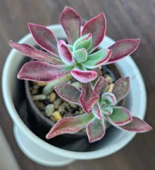 今年初めに買ったハムシー。葉の質感がベロア生地みたいで可愛いです。紅葉すると教えていただいて育ててました😊緑↓だった葉がこんなに赤くなってます。前の写真見ると、3本あったのか〜と。1本枯れてしまって植え替えたんでした😅自分には増やせる気がしないですが、夏を越してくれたので良かったです。