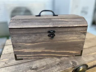 宝箱 先日クリアランスのワゴンで見つけた宝箱。 初めて見つけた時はまだ1980円だったのですが、気づいたら1000円になっていたので購入しました。 そしてようやく作ろうと思ったら、まさかの板のサイズが違いました... とりあえず問い合わせ先が書いてあったので、そこへ連絡して翌