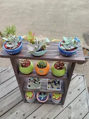 ミニ足場3段ラック 今日ワークショップに行って作ってきました…庭の多肉をミニ器にうえかざりました!