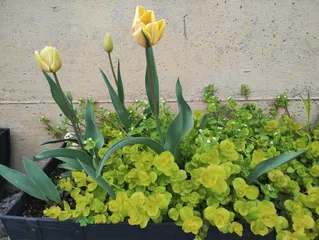 寄植え、大成功ですね✨ 私も、同じ寄植えをやりましたが、チューリップは、芽が出たと思ったらとろけてしまい、シクラメンも元気がなくなってしまいました😓 水やりかなぁ~と反省しています。 檸檬さんのは、とっても綺麗です🌷