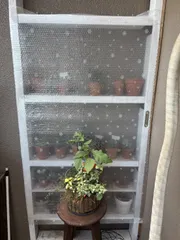 冬支度🍂 我が家のベランダ冬支度🍂 多肉植物andサボテンちゃんの棚にプチプチのカーテンつけました✨ ザ・温室
