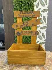 ガーデンサインプランター 2時間コース出したが、1時間半くらいで組み立てられました。自分で矢印の向きや形を決めなくてはいけなく、決断力がないと決められなくて、大変でした。