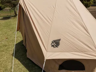 ステンシルでテントにワンポイント 無地のテント⛺キャンプ場での個性演出のため自家製ステンシルでワンポイント塗装 ステンシルは厚紙に印刷してカッターで切り抜きました