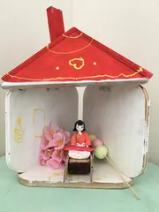 お雛様を廃材で ■作品内容カインズさんの廃材コーナーの木材を使用し、お雛様のお家を作りました■こだわりポイント廃材で屋根と壁を蝶番で繋げました。また、ペンキも残っていたペンキを使用。そしてお寿司をお供えしました!