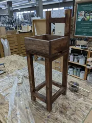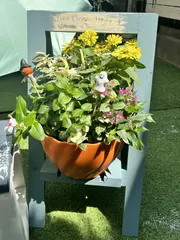 黒板付きフラワースタンド ワークショップを始めた頃この作品を作ったのですが外において使っていたのでダメになってしまい今回新たに作りました。今日も楽しくできました。