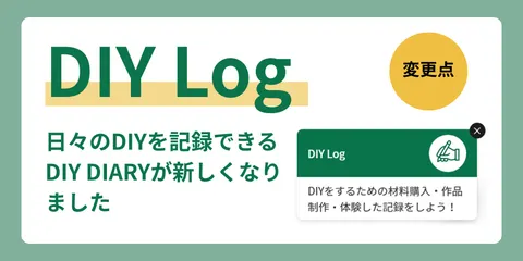 【機能追加】「DIY Log」で記録した作品をコレクションできるようになりました! ご自身が作った作品やワークショップの体験、購入した材料などを備忘録として記録することができる「DIY DIARY」は、「DIY Log」に名称を変更。新たに「作ったよ」で記録した作品を「作品コレクション」として表示することができるようになりました!コレクション表示ができることで、これまで備忘録として