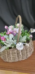 市主催の講座に参加して来ました。 花材:ビオラ2ポット、葉牡丹1ポット、シロタエギク1ポット。カゴ ちょっとお花が少なかったのが残念💧市主催で、3千円だったのでもっと球根やシクラメンも有るのを期待していので💧 でもしばらくは、花をたのしめそうなので😌🌸💕 &n