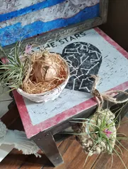 ■作品内容エアープランツに花が咲きました■工夫ポイント土不要なのでヒノキもめんに差し込みました■材料ヒノキもめん瓶■工程瓶にヒノキもめんを入れてエアープランツを差し込みました