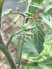 今日のミニトマト(70日目) 花芽おまけ少し見にくいですが、🔴で囲ってある所花芽で、ふた房目も付き始めました。 下のおまけ写真は、脇芽を土に刺してみました。 さて、どうなるか。お楽しみに