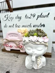 ぱんだちゃん鉢にチマ寄せ💕 ■材料プレゼント🎁のモルタル鉢セダム ■作り方まず、土を入れてオルトランを混ぜ混ぜ。あとは、ただひたすらチマチマとするだけ笑😆■工夫ポイント先日の展示会の時にぱんだちゃんからプレゼントで頂いた、ボードとモルタル鉢💕これはチマ寄せに決まり❣️ということで、姫秀麗がピンクに可愛くなるのを想像し