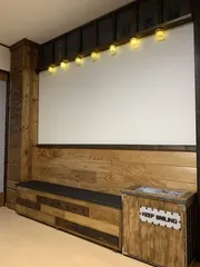夏のDIY2022【BOXベンチ】 端材をダボつぎして前後の板を作りました座面はスポンジ付きフェイクレザーをタッカーでとめて開けた時の見た目も考えキラキラリメイクシートと木材を使用キャスターの前に端材をビスでとめて脚付きベンチに見えるようにしましたワンコケージをバラしてBOXベンチを作りました