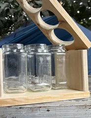 空瓶と端材で瓶ホルダー 空瓶と端材で瓶ホルダー以前WSに参加したホールソーで瓶ホルダーを思い出して作りました。今回は開閉式にして瓶が取り出せる様にしました。 まずは端材で材料をカットして作ったので断面が粗くなってしまいやすり掛けしたのですが完璧では無かったようで粗さ残ってしまいましたが傷がビンテージ感になれば良い