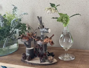 中之条ガーデンズのネイチャークラフト♪ 雪の中之条ガーデンズの赤い小屋にて、ネイチャークラフトを作ってきました(^^) 謎な生き物♪ 朝から天気が悪くて雪が降っている情報もあり心配しましたが、息子が車に乗せていってくれたので安心😆 雪のガーデンズが見られて嬉しい😆 本日から花桃の丘のイベ