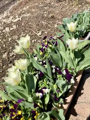 チューリップ🌷もパンジーも綺麗ですね❣️ 今日は良いお天気で、お花達も嬉しそうに見えます✨
