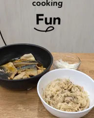サバの生姜煮ときのこのおこわ🍚 CookingFanに参加してきました✨苦手なお魚料理に挑戦です‼️骨すらキレイに抜けない💦切込みは入れすぎてバラけてしまいそう💦デモンストレーションの後も、あれ?なにするんだっけ?と格闘してまいりました😂きのこのおこわは蒸し上げて作ってきました‼️意外と簡単にできるのだなと勉強になりました😊下手っ