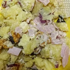 サツマイモサラダ ■材料サツマイモクルミレーズンハムチーズマヨネーズ ■作り方サツマイモはよく洗って皮ごと炊飯器で蒸すしゃもじで熱いうちにあら潰しする冷めてから具材をまぜる■工夫ポイント熱いうちに潰すのがやりやすいと思います具材もお好みで サツマイモとフルーツを具材に、生クリームホイップで和えると