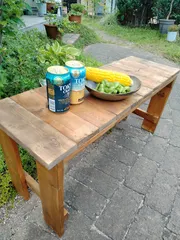 夏の縁台を作りました。元の木材は15年位前に主人が作った棚を作り変えました。これを解体しました🙏この棚があった場所にWSで作った、足場風3段ラックを置きたくて😅木材のビス跡はパテで埋めました。それより、主人はこの棚を作る時、下穴開けてないな…😅実際の色はこの色が一番近いかな😎本当はB&Bのシェルフベ