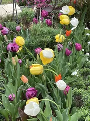 風強かったですね 色とりどりのチューリップ、綺麗ですね