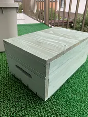 夏のDIY2022【ガーデンBOX】 BOXです。ガーデニングというほどではないのですが、サボテンや観葉植物用の土やスコップなどを収納するのに良いなぁ〜と思いました。 特殊な形ではないので、少し楽かなと思ったら思いのほか時間がかかりました。ボックス作成を甘くみていました😅いつもはメープルやウォルナットなどの色を使用するのですが