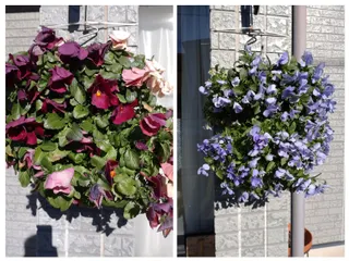 先日、ハンギングバスケットを作成。なかなかビオラが落ち着かず🌀以前に作ったフラワースタンドに飾りました♥ めでたしかな笑