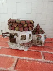 先日つちだまで作った、お花屋さん鉢完成しました🫡そのまま土を入れて、植木鉢としても使えます👍 割り箸の扉・ワイヤーの飾り格子・電灯も作りました!ビオラもりもり✾🫙も入るし、土を直接入れても🆗! CAINZでSALEだった!!お供えブーケ💐 を飾りました🫡 普段はお水しか