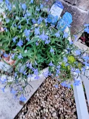 植え付けして20日経ちました🩵 🩵青いお花がこんもり育ってきましたが今日〜梅雨入りお花お庭でちょっとかわいそう💧まだまだ大きくこんもりしてね🩵植えたての様子🩵