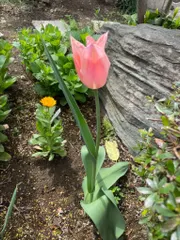 チューリップ3号(2年目のサネ) 引いた画像です。2年目を迎えたサネ、球根は4個埋めてあるんですが、ココまではこんな感じです。手前のが一つは咲きそうですね。因みに1年目の昨春はこんなでした。↓昨年4月の様子です。