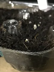 種を埋めるの浅かった本日の成果【36分の2】種を蒔いてから5日目発芽した数『36個も種蒔いたんか〜い』「寒の戻りでも、発芽しました😵」