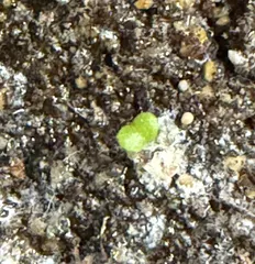 リトープスの芽 すご〜く小さいですが、一か月くらい前に種蒔きしたリトープスの芽🌱が出てきたようデスまだ、1つだけですが、これから出て来るのかな〜?😅なんとか大きくなって欲しいデス😌