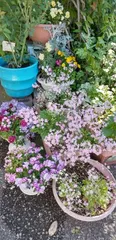 玄関前をちょっと模様変え 家の前の道が小学校の通学路に、なっているのでちょっと春🌸ぽっくしてみました。先週までの様子。ちょっと殺風景ですね。青い鉢には、薔薇が蕾を付けていました。😺寄せ植えしたのも。左側の奥です。キンギョソウの鉢が、2鉢有ります。サクラソウと紫陽花(ブライダルブーケ)左側、キンギョソウの奥にハナミズキも咲いて