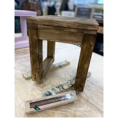 ミニベンチ ちょこっと座ったり、観葉植物を置くのにもピッタリで、とてもカワイイミニベンチです🌿ステインをあえて掠れた感じに塗りました😊