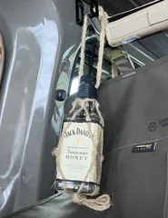 お手軽DIY ウイスキーの空瓶にお気に入りのホワイトムスクの芳香剤入れてハンギング 麻紐で吊り下げアロマディフューザーっぽく😅車に装備してます♪