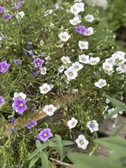 ニーレンベルギア オーガスタのブルーリングとアルバブルー 今シーズンお気に入りのお花です☺️すつかりお花もなくなって枯れかかってるように見えてたのですが、数日前のゲリラ豪雨で一気に花が咲いてくれました✨✨✨ちょっと涼しくなってきたのも良いのでしょうか?嬉しいです🎵