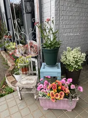 ミニベンチ置いてみました ワークショップではじめて作ったミニベンチ。玄関先に置いてみました🤗パステルな春色に、爽やかな風を感じます🎶