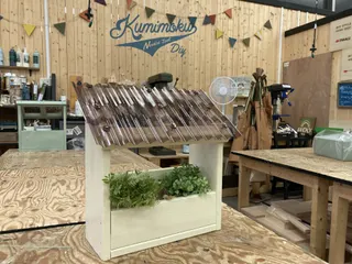 波板を使ったプランター 思ったより、大きくてビックリでした。実は、この写真の屋根は、1番下の波板が逆に付いています!帰宅して、主人が気付きました😅これじゃ雨漏りすると、主人にすぐ直されてしまいましたよ。 この日、スタンプが5個たまり、上級者バッヂと、ランク2になったのでシールも頂きました☺️買ったばかりのマイドラ