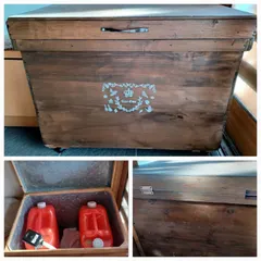 茶箱をコンテナにリメイクしました✌️ ■作品内容蔵に埋もれていた昔の茶箱をリメイク。灯油保管ケースにして、玄関に置いています。茶箱は内側にアルミ板?が貼ってあるため、除湿、防臭力が強く灯油臭くなりません。 ■こだわりポイント蓋を蝶番で取り付けて、キャスターを付けました。CAINZのオリジナル水性ペンキのオークで塗ってアンティー
