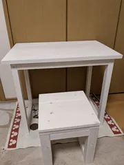 ミニ机&ミニベンチ ミニの机。先日のミニベンチに合わせて同じ白にしました。ノートパソコンくらいは、置いて使えそうです。😄